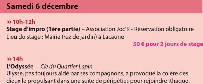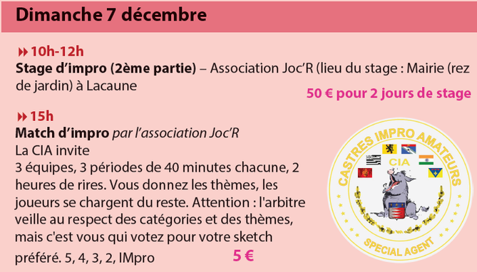 La Communauté de Communes du Haut-Languedoc et la ville de Lacaune-les-bains sont fières de vous présenter leur petit dernier ! Un festival de théâtre amateur mêlant rires, réflexions...et improvisations ! Un programme varié et de qualité mené par nos troupes associatives régionales.